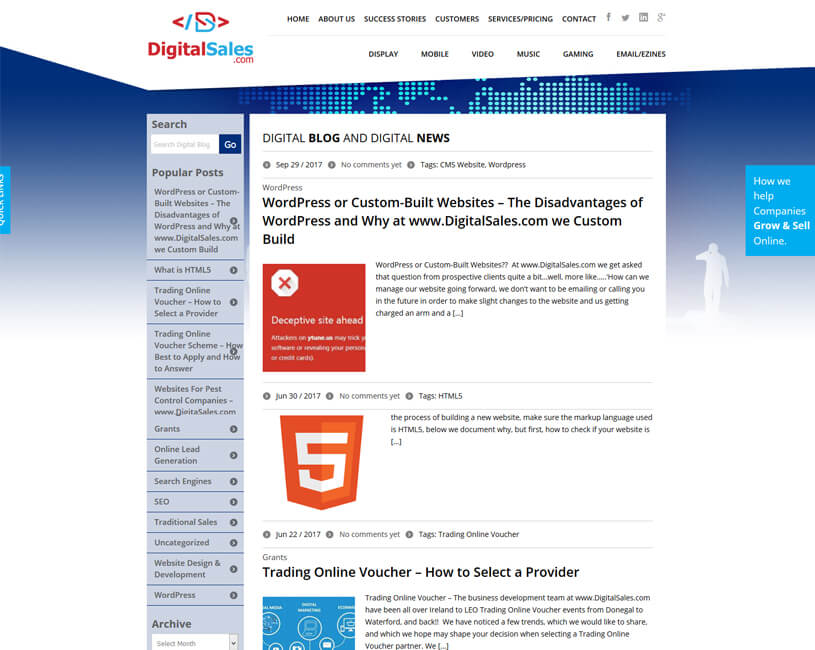 Almost all our clients at Digital Sales have embedded a WordPress blog into their website for the very reasons above. You can see a selection of our WordPress Development and website integration work below (including examples of content marketing and SEO Blog Posts). We have also built Woo Commerce shop into a number of our clients websites.